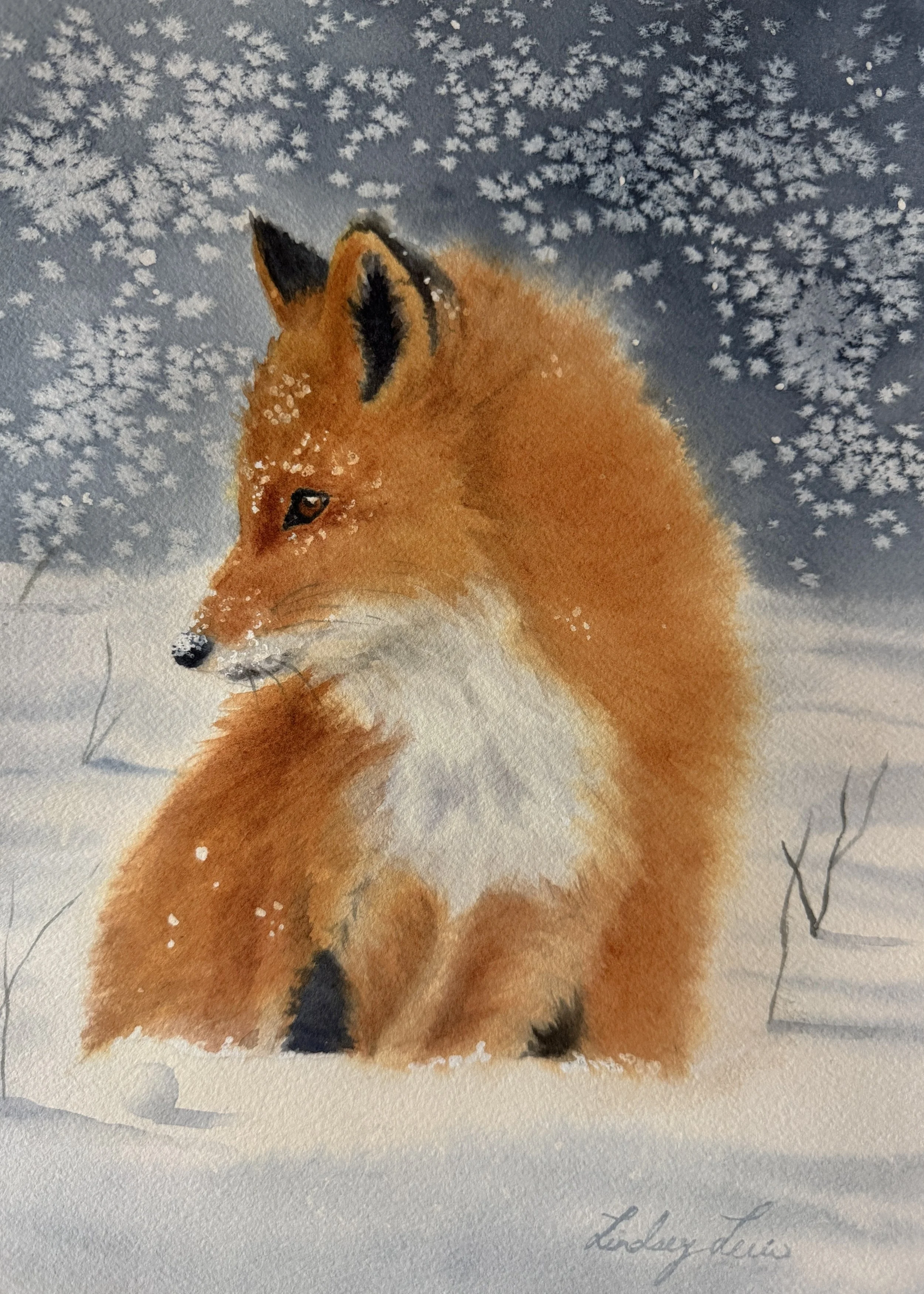 The Snow Fox, Lindsey Lewis, Watercolor, $385.
